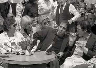 NEG-RETROSPETTIVA ADRIANO CELENTANO ATTORE E CANTANTE NELLA FOTO ADRIANO CELENTANO CON CLAUDIA MORI AL FESTIVAL DI CANNES NELL'ANNO 1975 PRESENTE IL FILM “ YUPPI DU “ AG ALDO LIVERANI SAS