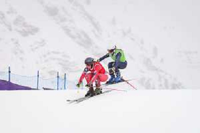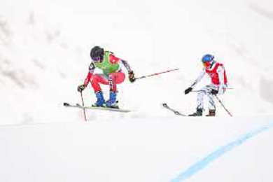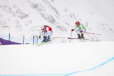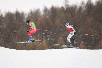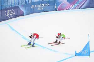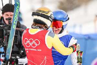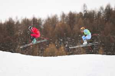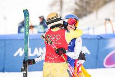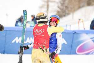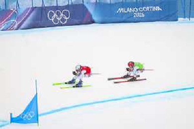 Daniela MAIER, GER, bib number 1, Marielle BERGER SABBATEL, FRA, bib number 17, Action Photo?, Women's Ski Cross at Freestyle Olympic Winter Games 2025-26 in Milano-Cortina, Italy, 2026-02-20, Photo Credit: action press / Naoki Morita /KarmaPress -AGENZIA ALDO LIVERANI SAS ITALY ONLY EDITORIAL USE ONLY