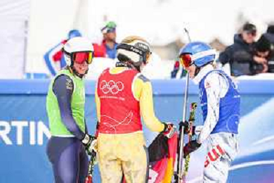 Jade GRILLET AUBERT, FRA, bib number 6, Brittany PHELAN, CAN, bib number 22, Sonja GIGLER, AUT, bib number 11, Action Photo?, Women's Ski Cross at Freestyle Olympic Winter Games 2025-26 in Milano-Cortina, Italy, 2026-02-20, Photo Credit: action press / Naoki Morita /KarmaPress -AGENZIA ALDO LIVERANI SAS ITALY ONLY EDITORIAL USE ONLY