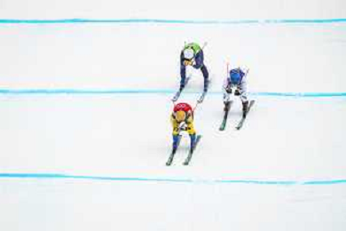 Daniela MAIER, GER, bib number 1, Fanny SMITH, SUI, bib number 3, Sandra NAESLUND, SWE, bib number 2, Action Photo?, Women's Ski Cross at Freestyle Olympic Winter Games 2025-26 in Milano-Cortina, Italy, 2026-02-20, Photo Credit: action press / Naoki Morita /KarmaPress -AGENZIA ALDO LIVERANI SAS ITALY ONLY EDITORIAL USE ONLY