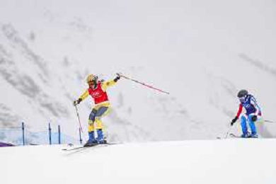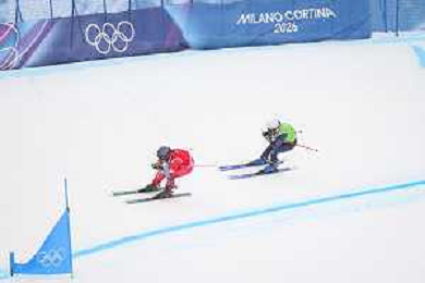 Saskja LACK, SUI, bib number 4, Talina GANTENBEIN, SUI, bib number 5, Action Photo?, Women's Ski Cross at Freestyle Olympic Winter Games 2025-26 in Milano-Cortina, Italy, 2026-02-20, Photo Credit: action press / Naoki Morita /KarmaPress -AGENZIA ALDO LIVERANI SAS ITALY ONLY EDITORIAL USE ONLY