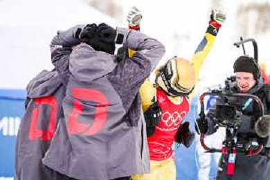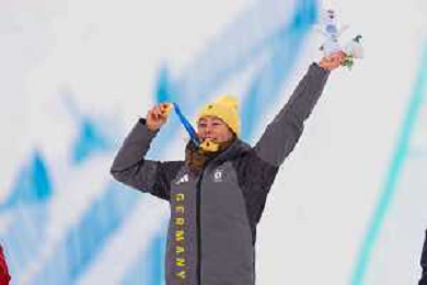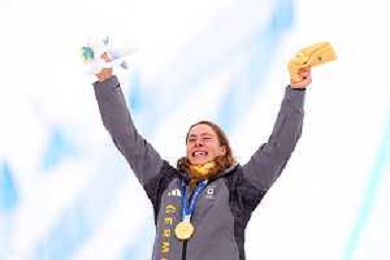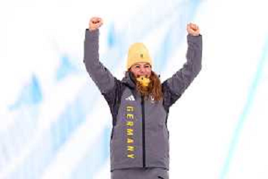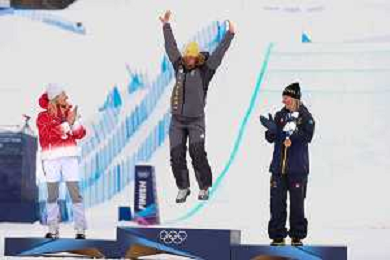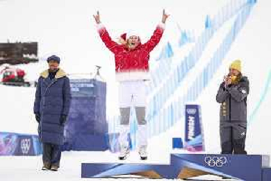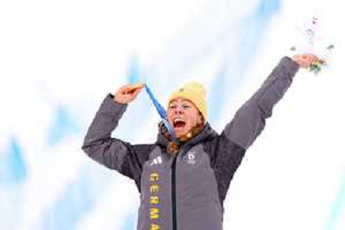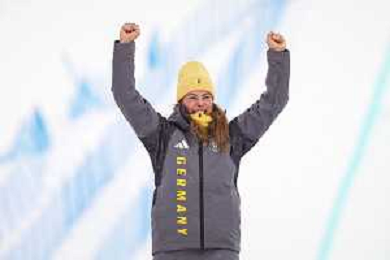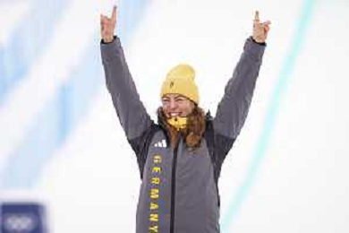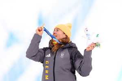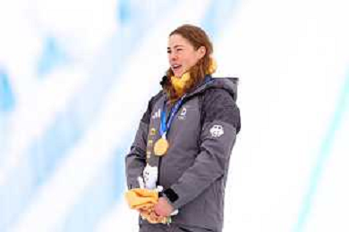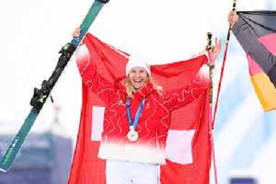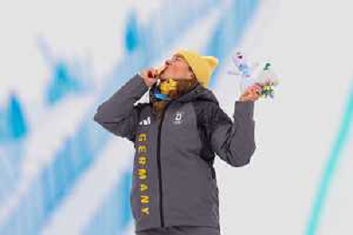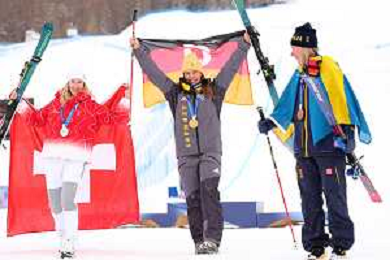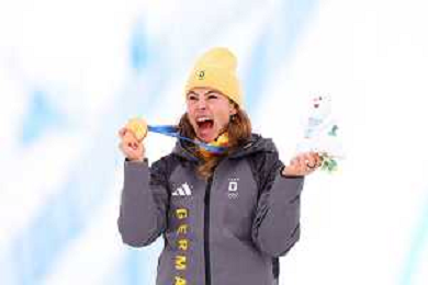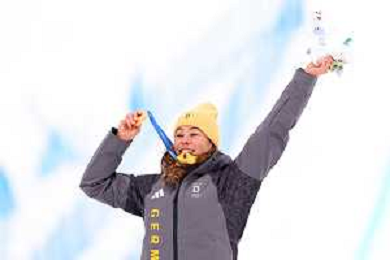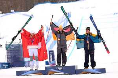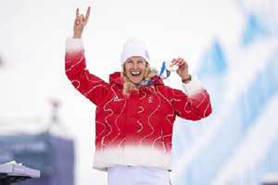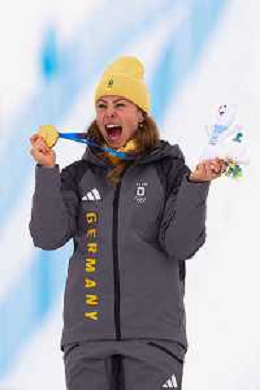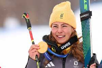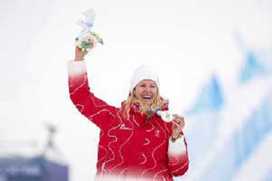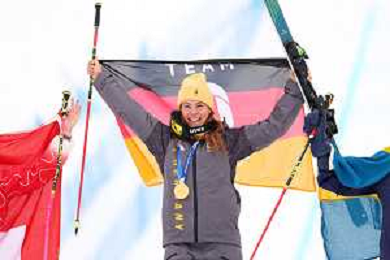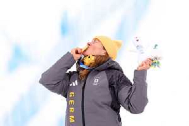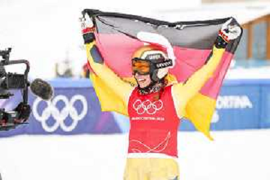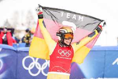 Daniela MAIER, GER, bib number 1, Podium Photo, Women's Ski Cross at Freestyle Olympic Winter Games 2025-26 in Milano-Cortina, Italy, 2026-02-20, Photo Credit: action press / Naoki Morita /KarmaPress -AGENZIA ALDO LIVERANI SAS ITALY ONLY EDITORIAL USE ONLY