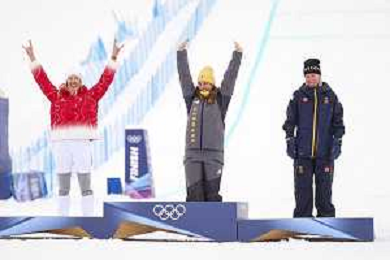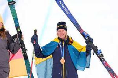 Sandra NAESLUND, SWE, bib number 2, Podium Photo, Women's Ski Cross at Freestyle Olympic Winter Games 2025-26 in Milano-Cortina, Italy, 2026-02-20, Photo Credit: action press / Naoki Morita /KarmaPress -AGENZIA ALDO LIVERANI SAS ITALY ONLY EDITORIAL USE ONLY