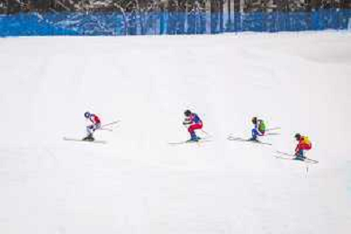 Talina GANTENBEIN, SUI, bib number 5, Sixtine COUSIN, SUI, bib number 13, Anouck ERRARD, FRA, bib number 12, Saskja LACK, SUI, bib number 4, Action Photo?, Women's Ski Cross at Freestyle Olympic Winter Games 2025-26 in Milano-Cortina, Italy, 2026-02-20, Photo Credit: action press / Naoki Morita /KarmaPress -AGENZIA ALDO LIVERANI SAS ITALY ONLY EDITORIAL USE ONLY