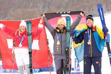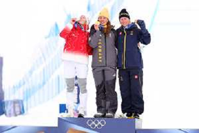 Daniela MAIER, GER, bib number 1, Podium Photo, Fanny SMITH, SUI, bib number 3, Podium Photo, Sandra NAESLUND, SWE, bib number 2, Podium Photo, Women's Ski Cross at Freestyle Olympic Winter Games 2025-26 in Milano-Cortina, Italy, 2026-02-20, Photo Credit: action press / Naoki Morita /KarmaPress -AGENZIA ALDO LIVERANI SAS ITALY ONLY EDITORIAL USE ONLY