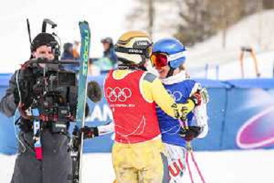 Veronika REDDER, GER, bib number 15, Mylene BALLET BAZ, FRA, bib number 18, Action Photo?, Women's Ski Cross at Freestyle Olympic Winter Games 2025-26 in Milano-Cortina, Italy, 2026-02-20, Photo Credit: action press / Naoki Morita /KarmaPress -AGENZIA ALDO LIVERANI SAS ITALY ONLY EDITORIAL USE ONLY