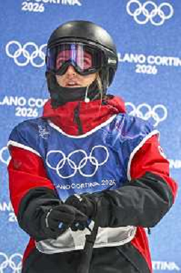 Amy FRASER, CAN, bib number 9, Action Photo, Women's Freeski Halfpipe Qualification at Freestyle Olympic Winter Games 2025-26 in Milano-Cortina, Italy, 2026-02-19, Photo Credit: action press / Christian Stadler /KarmaPress -AGENZIA ALDO LIVERANI SAS ITALY ONLY EDITORIAL USE ONLY