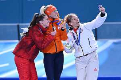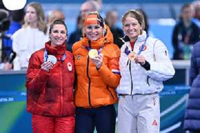 Olimpiadi Milano Cortina 2026 nella foto il podio, da SX Ivanie Blondin (CAN), Marijke Groenewoud (NED) e Mia Manganello (USA) Milano RhoFiera 21-02-2026 Milano Speed Skating Stadium Pattinaggio di velocita’ - Mass Start femminile XXV Giochi Olimpici Invernali - Milano Cortina 2026 foto Roberto Garavaglia/Agenzia Aldo Liverani sas