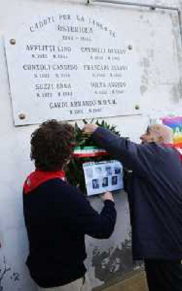 OSTERIOLA (IMOLA) INCONTRO A RICORDO DEGLI ANTIFASCISTI E DEI PARTIGIANI DI OSTERIOLA NELLA FOTO DA SINISTRA EMILIO DALPANE I PAPAVERI E PARTIGIANO VITTORIO GARDI DEPOSITANO UNA CORONA IN MEMORIA DEI PARTIGIANI DI OSTERIOLA UCCISI ©SANNA -AGENZIA ALDO LIVERANI SAS