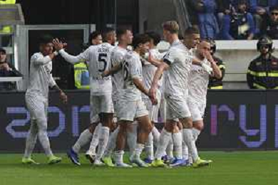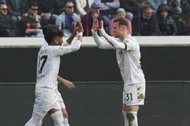 Sam Beukema of SSC Napoli celebrates with team mate after goal during Atalanta BC vs SSC Napoli, 26° Serie A Enilive 2025-26 game at New Balance arena in Bergamo (BG), Italy, on February 22, 2026. (Photo by Davide Casentini) -AGENZIA ALDO LIVERANI SAS