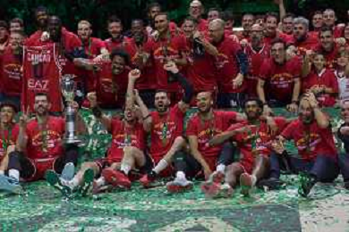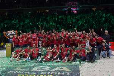 Torino 22.02.2026 Inalpi Arena @Manuela Viganti /Ag. Aldo Liverani sas EA7 Emporio Armani Milano vs Bertram Derthona Tortona Frecciarossa Finale Final Eight Basket 2026 Nella foto: festa milano a fine gara ©Viganti -AGENZIA ALDO LIVERANI SAS