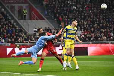 Milan vs Parma nella foto Mariano Emir Troilo (Parma) segna il gol dell'1 a 0 Milano 22-02-2026 Stadio Giuseppe Meazza - San Siro Milan vs Parma Campionato Serie A Enilive - 26a giornata foto Roberto Garavaglia/Agenzia Aldo Liverani sas