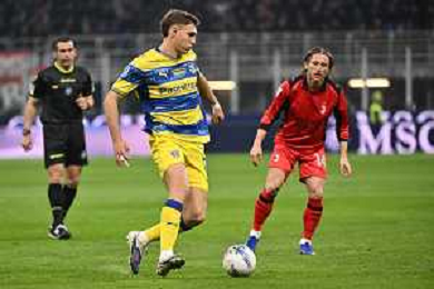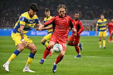 Milan vs Parma nella foto Mateo Pellegrino Casalanguila (Parma) e sulla DX Luka Modric (Milan) Milano 22-02-2026 Stadio Giuseppe Meazza - San Siro Milan vs Parma Campionato Serie A Enilive - 26a giornata foto Roberto Garavaglia/Agenzia Aldo Liverani sas