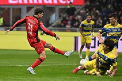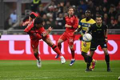 Milan vs Parma nella foto rabona di Alexis Saelemaekers (Milan) Milano 22-02-2026 Stadio Giuseppe Meazza - San Siro Milan vs Parma Campionato Serie A Enilive - 26a giornata foto Roberto Garavaglia/Agenzia Aldo Liverani sas