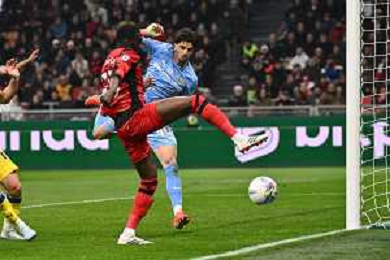 Milan vs Parma nella foto Edoardo Corvi (Parma) in uscita ferma Rafael Leao (Milan) Milano 22-02-2026 Stadio Giuseppe Meazza - San Siro Milan vs Parma Campionato Serie A Enilive - 26a giornata foto Roberto Garavaglia/Agenzia Aldo Liverani sas