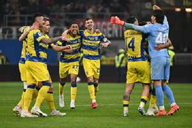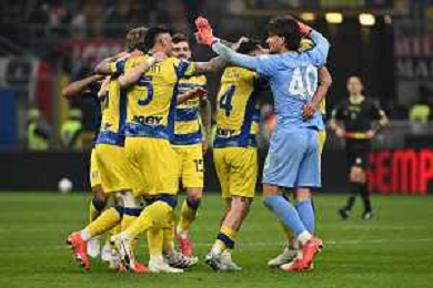 Milan vs Parma nella foto esultanza finale Parma Milano 22-02-2026 Stadio Giuseppe Meazza - San Siro Milan vs Parma Campionato Serie A Enilive - 26a giornata foto Roberto Garavaglia/Agenzia Aldo Liverani sas