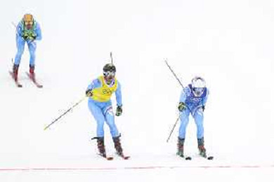 Youri DUPLESSIS-KERGOMARD, FRA, bib number 21, Melvin TCHIKNAVORIAN, FRA, bib number 5, Terence TCHIKNAVORIAN, FRA, bib number 12, Action Photo, Men's Ski Cross at Freestyle Olympic Winter Games 2025-26 in Milano-Cortina, Italy, 2026-02-21, Photo Credit: action press / Naoki Morita / KarmaPress -AGENZIA ALDO LIVERANI SAS ITALY ONLY EDITORIAL USE ONLY