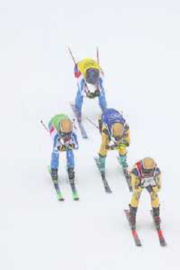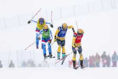 Simone DEROMEDIS, ITA, bib number 9, Reece HOWDEN, CAN, bib number 1, Dominik ZUECH, ITA, bib number 8, Federico TOMASONI, ITA, bib number 17, Action Photo, Quaterfinal 1, Men's Ski Cross at Freestyle Olympic Winter Games 2025-26 in Milano-Cortina, Italy, 2026-02-21, Photo Credit: action press / Naoki Morita / KarmaPress -AGENZIA ALDO LIVERANI SAS ITALY ONLY EDITORIAL USE ONLY