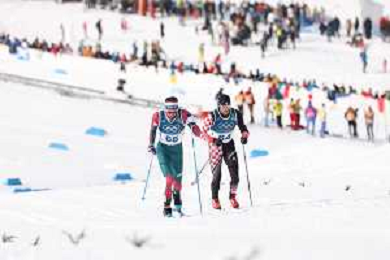 Adam BUKI, HUN, bib number 65, action photo, Marko SKENDER, CRO, bib number 64, action photo, Men's 50km Mass Start Classic at Cross-Country Olympic Winter Games 2025-26 in Milano Cortina, Italy, 2026-02-21, Photo Credit: action press / Julia Piatkowska / KarmaPress -AGENZIA ALDO LIVERANI SAS - ITALY ONLY EDITORIAL USE ONLY