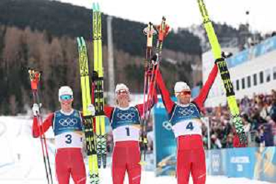 Martin Loewstroem NYENGET, NOR, Johannes Hoesflot KLAEBO, NOR, Emil IVERSEN, NOR, winner photo, Men's 50km Mass Start Classic at Cross-Country Olympic Winter Games 2025-26 in Milano Cortina, Italy, 2026-02-21, Photo Credit: action press / Julia Piatkowska / KarmaPress -AGENZIA ALDO LIVERANI SAS - ITALY ONLY EDITORIAL USE ONLY