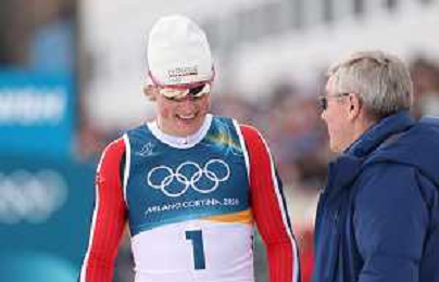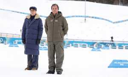 Johannes Hoesflot KLAEBO, NOR, bib number 1,Dr. Thomas BACH, IOC Member, event photo, Men's 50km Mass Start Classic at Cross-Country Olympic Winter Games 2025-26 in Milano Cortina, Italy, 2026-02-21, Photo Credit: action press / Julia Piatkowska / KarmaPress -AGENZIA ALDO LIVERANI SAS - ITALY ONLY EDITORIAL USE ONLY