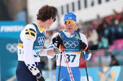 Johan HAEGGSTROEM, SWE, bib number 30, Lauri VUORINEN, FIN, bib number 37, action photo, Men's 50km Mass Start Classic at Cross-Country Olympic Winter Games 2025-26 in Milano Cortina, Italy, 2026-02-21, Photo Credit: action press / Julia Piatkowska / KarmaPress -AGENZIA ALDO LIVERANI SAS - ITALY ONLY EDITORIAL USE ONLY