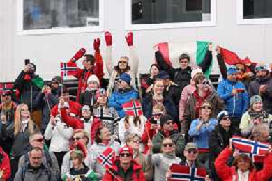 Fans of norway, event photo, Men's 50km Mass Start Classic at Cross-Country Olympic Winter Games 2025-26 in Milano Cortina, Italy, 2026-02-21, Photo Credit: action press / Julia Piatkowska / KarmaPress -AGENZIA ALDO LIVERANI SAS - ITALY ONLY EDITORIAL USE ONLY