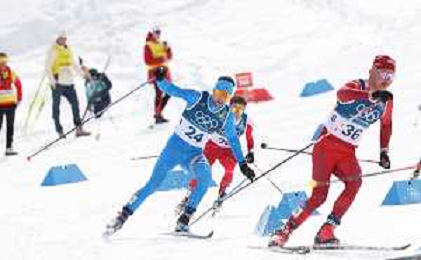 Nicola WIGGER, SUI, bib number 36, Simone DAPRA, ITA, bib number 24, Dominik BURY, POL, bib number 29, action photo, Men's 50km Mass Start Classic at Cross-Country Olympic Winter Games 2025-26 in Milano Cortina, Italy, 2026-02-21, Photo Credit: action press / Julia Piatkowska / KarmaPress -AGENZIA ALDO LIVERANI SAS - ITALY ONLY EDITORIAL USE ONLY