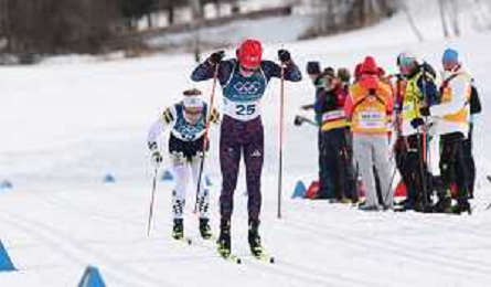Gustaf BERGLUND, SWE, bib number 13, Joe DAVIES, GBR, bib number 25, action photo, Men's 50km Mass Start Classic at Cross-Country Olympic Winter Games 2025-26 in Milano Cortina, Italy, 2026-02-21, Photo Credit: action press / Julia Piatkowska / KarmaPress -AGENZIA ALDO LIVERANI SAS - ITALY ONLY EDITORIAL USE ONLY