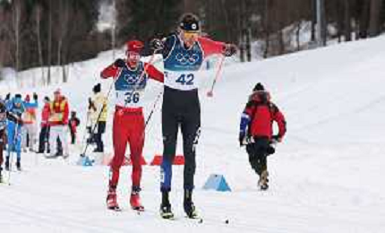 Nicola WIGGER, SUI, bib number 36, Mike OPHOFF, CZE, bib number 42, action photo, Men's 50km Mass Start Classic at Cross-Country Olympic Winter Games 2025-26 in Milano Cortina, Italy, 2026-02-21, Photo Credit: action press / Julia Piatkowska / KarmaPress -AGENZIA ALDO LIVERANI SAS - ITALY ONLY EDITORIAL USE ONLY