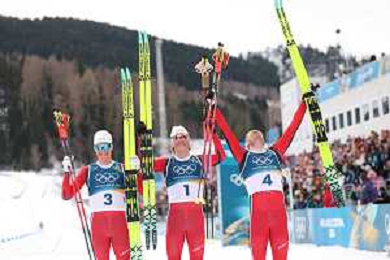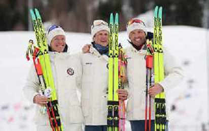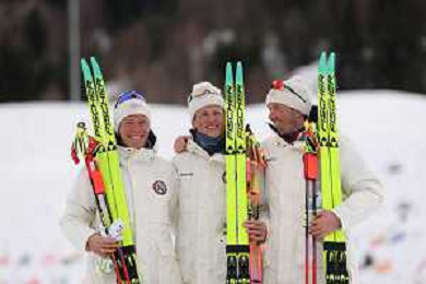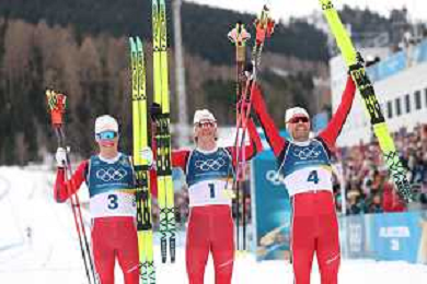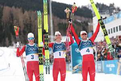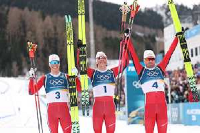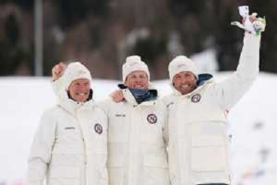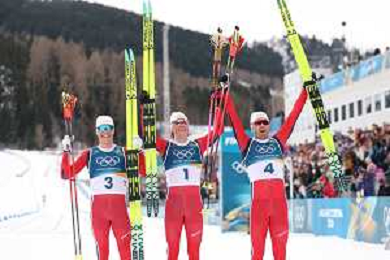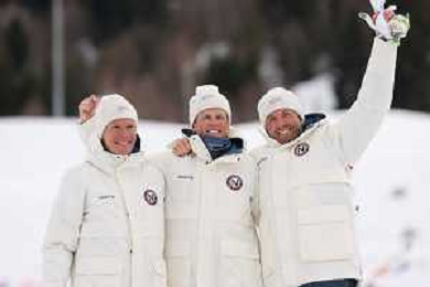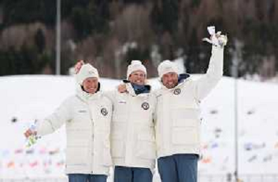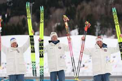 Martin Loewstroem NYENGET, NOR, Johannes Hoesflot KLAEBO, NOR, Emil IVERSEN, NOR, winner photo, Men's 50km Mass Start Classic at Cross-Country Olympic Winter Games 2025-26 in Milano Cortina, Italy, 2026-02-21, Photo Credit: action press / Julia Piatkowska / KarmaPress -AGENZIA ALDO LIVERANI SAS - ITALY ONLY EDITORIAL USE ONLY