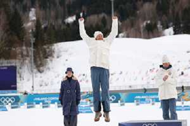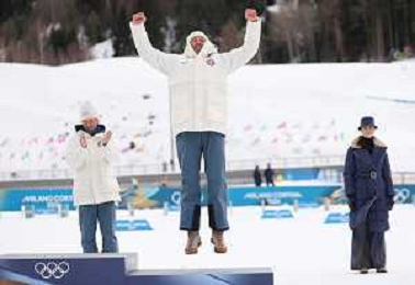 Martin Loewstroem NYENGET, NOR, podium photo, Men's 50km Mass Start Classic at Cross-Country Olympic Winter Games 2025-26 in Milano Cortina, Italy, 2026-02-21, Photo Credit: action press / Julia Piatkowska / KarmaPress -AGENZIA ALDO LIVERANI SAS - ITALY ONLY EDITORIAL USE ONLY