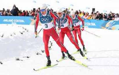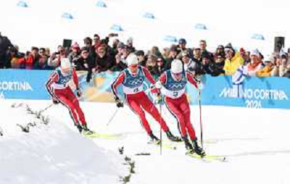 Johannes Hoesflot KLAEBO, NOR, bib number 1, Emil IVERSEN, NOR, bib number 4, Martin Loewstroem NYENGET, NOR, bib number 3, action photo, Men's 50km Mass Start Classic at Cross-Country Olympic Winter Games 2025-26 in Milano Cortina, Italy, 2026-02-21, Photo Credit: action press / Julia Piatkowska / KarmaPress -AGENZIA ALDO LIVERANI SAS - ITALY ONLY EDITORIAL USE ONLY