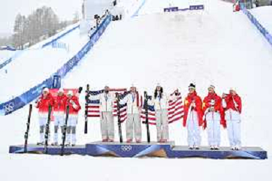 Kaila KUHN, USA, bib number 5-1, women, AET, Winner Photo, Podium Photo, Connor CURRAN, USA, bib number 5-2, men, AET, Winner Photo, Podium Photo, Christopher LILLIS, USA, bib number 5-3, men, AET, Winner Photo, Podium Photo, Lina KOZOMARA, SUI, bib number 3-1, women, AET, Podium Photo, Pirmin WERNER, SUI, bib number 3-2, men, AET, Podium Photo, Noe ROTH, SUI, bib number 3-3, men, AET, Podium Photo, Mengtao XU, CHN, bib number 1-1, women, AET, Podium Photo, Xindi WANG, CHN, bib number 1-2, men, AET, Podium Photo, Tianma LI, CHN, bib number 1-3, men, AET, Podium Photo, Aerials Team at Freestyle Olympic Winter Games 2025-26 in Milano-Cortina, Italy, 2026-02-21, Photo Credit: action press / Christian Stadler