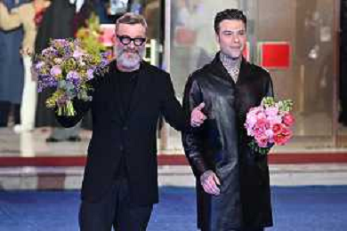 Festival Sanremo 2026 nella foto Marco Masini e Fedez Sfilata di presentazione dei cantanti in gara Sanremo (IM) 23-02-2026 Teatro Ariston 76mo Festival della Canzone Italiana foto Roberto Garavaglia/agenzia Aldo Liverani sas