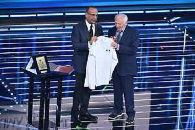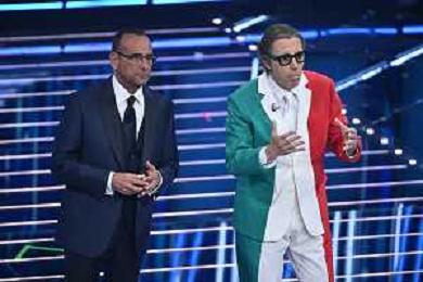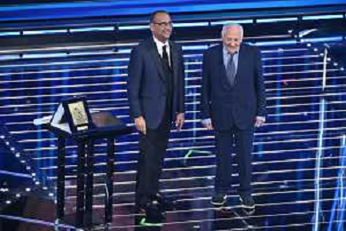 Festival Sanremo 2026 nella foto Carlo Conti con Ubaldo Pantani Sanremo (IM) 26-02-2026 Teatro Ariston 76mo Festival della Canzone Italiana - Terza Serata foto Roberto Garavaglia/agenzia Aldo Liverani sas