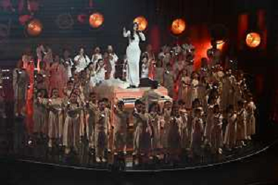 Festival Sanremo 2026 nella foto Laura Pausini con il Piccolo Coro dell'Antoniano e il Piccolo Coro di Caivano Sanremo (IM) 26-02-2026 Teatro Ariston 76mo Festival della Canzone Italiana - Terza Serata foto Roberto Garavaglia/agenzia Aldo Liverani sas