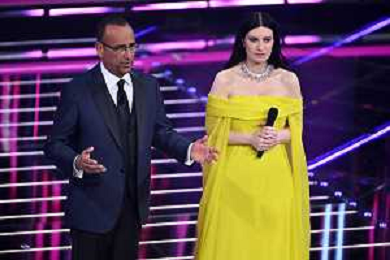 Festival Sanremo 2026 nella foto Carlo Conti e Laura Pausini Sanremo (IM) 26-02-2026 Teatro Ariston 76mo Festival della Canzone Italiana - Terza Serata foto Roberto Garavaglia/agenzia Aldo Liverani sas