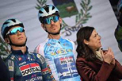 01-03-2026 Giro Di Sardegna; Tappa 05 Nuoro - Olbia; 2026, Soudal - Quick Step; Zana, Filippo; Chiappucci, Claudio; Bugno, Gianni; Aru, Fabio; Pella, Roberto; Nuoro; ©SIROTTI-AGENZIA ALDO LIVERANI SAS