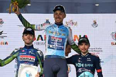 01-03-2026 Giro Di Sardegna; Tappa 05 Nuoro - Olbia; 2026, Soudal - Quick Step; 2026, Mbh Bank - Csb Telecom Fort; Zana, Filippo; Garofoli, Gianmarco; Verre, Alessandro; Olbia; ©SIROTTI-AGENZIA ALDO LIVERANI SAS