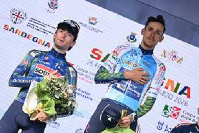 01-03-2026 Giro Di Sardegna; Tappa 05 Nuoro - Olbia; 2026, Soudal - Quick Step; Zana, Filippo; Todde, Alessandra; Olbia; ©SIROTTI-AGENZIA ALDO LIVERANI SAS