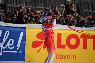 Marco ODERMATT, SUI, bib number 10, Action Photo, Winner Photo, Men's Downhill at Audi FIS Ski World Cup 2025-26 in Garmisch Partenkirchen, Germany, 2026-02-28, Photo Credit: action press / Markus Ulmer ag karmapress-ag aldo liverani sas-only italy