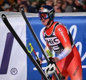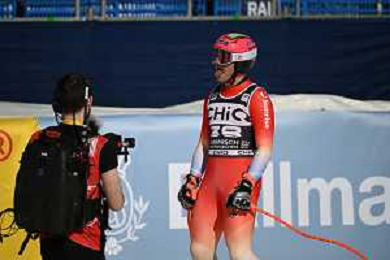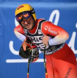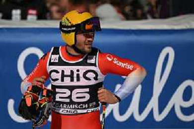 Alessio MIGGIANO, SUI, bib number 26, Action Photo, Men's Downhill at Audi FIS Ski World Cup 2025-26 in Garmisch Partenkirchen, Germany, 2026-02-28, Photo Credit: action press / Markus Ulmer ag karmapress-ag aldo liverani sas-only italy