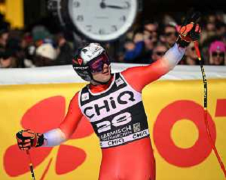 Franjo VON ALLMEN, SUI, bib number 15, Action Photo,Franjo VON ALLMEN, SUI, bib number 15, Action Photo, Men's Downhill at Audi FIS Ski World Cup 2025-26 in Garmisch Partenkirchen, Germany, 2026-02-28, Photo Credit: action press / Markus Ulmer ag karmapress-ag aldo liverani sas-only italy