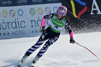Keely CASHMAN, USA, bib number 4, Action Photo, Women's Super G at Audi FIS Ski World Cup 2025-26 in Soldeu, Andorra, 2026-02-28, Photo Credit: action press / Toni Grases ag karmapress-ag aldo liverani sas-only italy