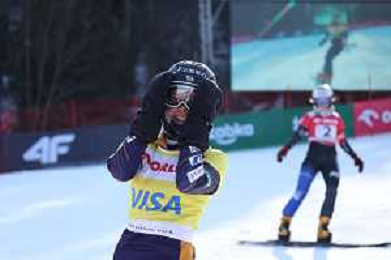 Ram. HOFMEISTER, GER, bib number 3, action photo, Women's Parallel Giant Slalom at Visa FIS Snowboard Alpine World Cup 2025-26 in Krynica, Poland, 2026-02-28, Photo Credit: action press / Miha Matavz ag karmapress-ag aldo liverani sas-only italy