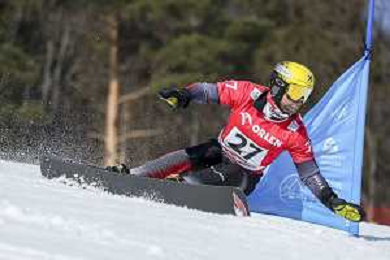 Andreas PROMMEGGER, AUT, bib number 27, Action Photo, Men's Parallel Giant Slalom Qualification at Visa FIS Snowboard Alpine World Cup 2025-26 in Krynica, Poland, 2026-03-01, Photo Credit: action press / Miha Matavz