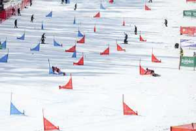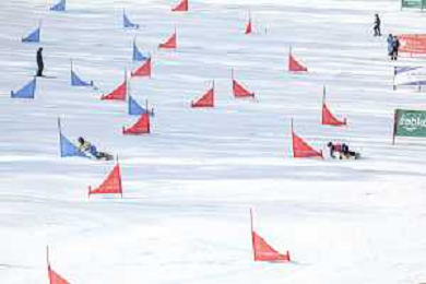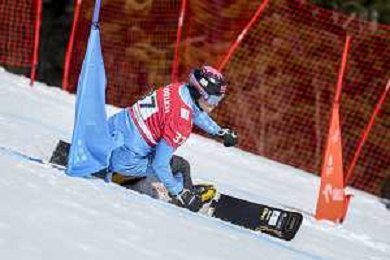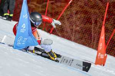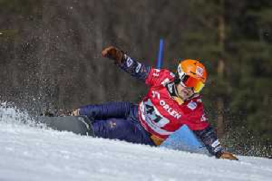 Sabine PAYER, AUT, bib number 2, Action Photo, Women's Parallel Giant Slalom at Visa FIS Snowboard Alpine World Cup 2025-26 in Krynica, Poland, 2026-03-01, Photo Credit: action press / Miha Matavz
