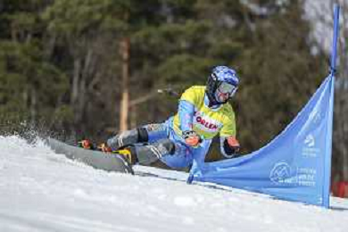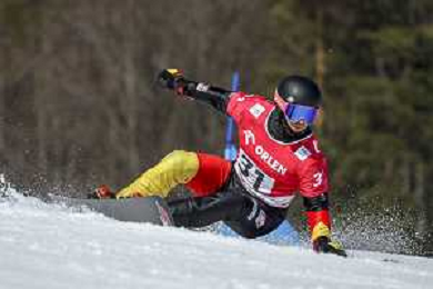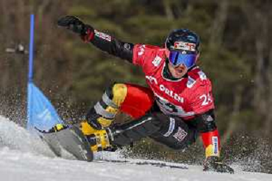 Gabriel MESSNER, ITA, bib number 37, Action Photo, Men's Parallel Giant Slalom Qualification at Visa FIS Snowboard Alpine World Cup 2025-26 in Krynica, Poland, 2026-03-01, Photo Credit: action press / Miha Matavz