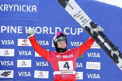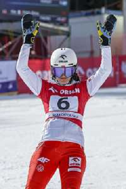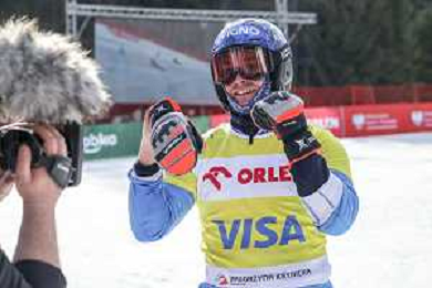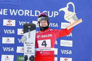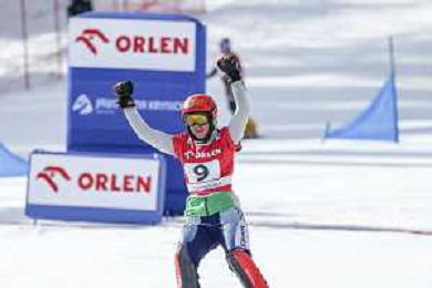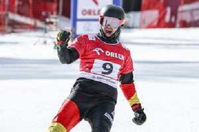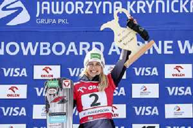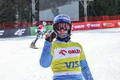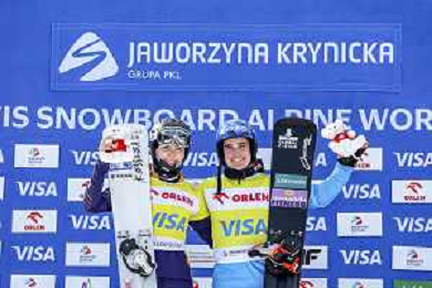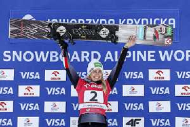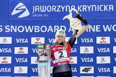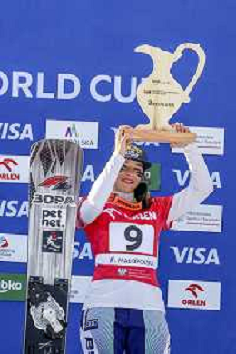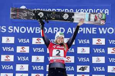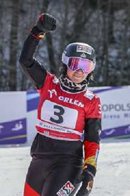 Sabine PAYER, AUT, bib number 2, Winner Photo, Women's Parallel Giant Slalom at Visa FIS Snowboard Alpine World Cup 2025-26 in Krynica, Poland, 2026-03-01, Photo Credit: action press / Miha Matavz